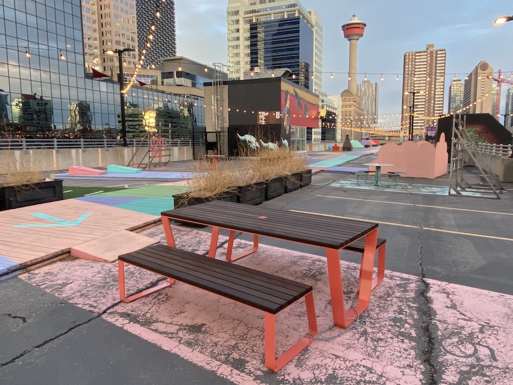 Established in 2020, High Park is a rooftop public park and event space in the Beltline serving as an exciting destination for residents and visitors to the city alike. As one of Beltline's parks with the highest city-wide draw, the park reimagines the under-utilized 90,000 sqft (2-acre) rooftop of the City Centre Parkade located at 340 10 Ave SW and provides much needed additional public space in the community. The Park is operated by the Beltline Neighbourhoods Association.